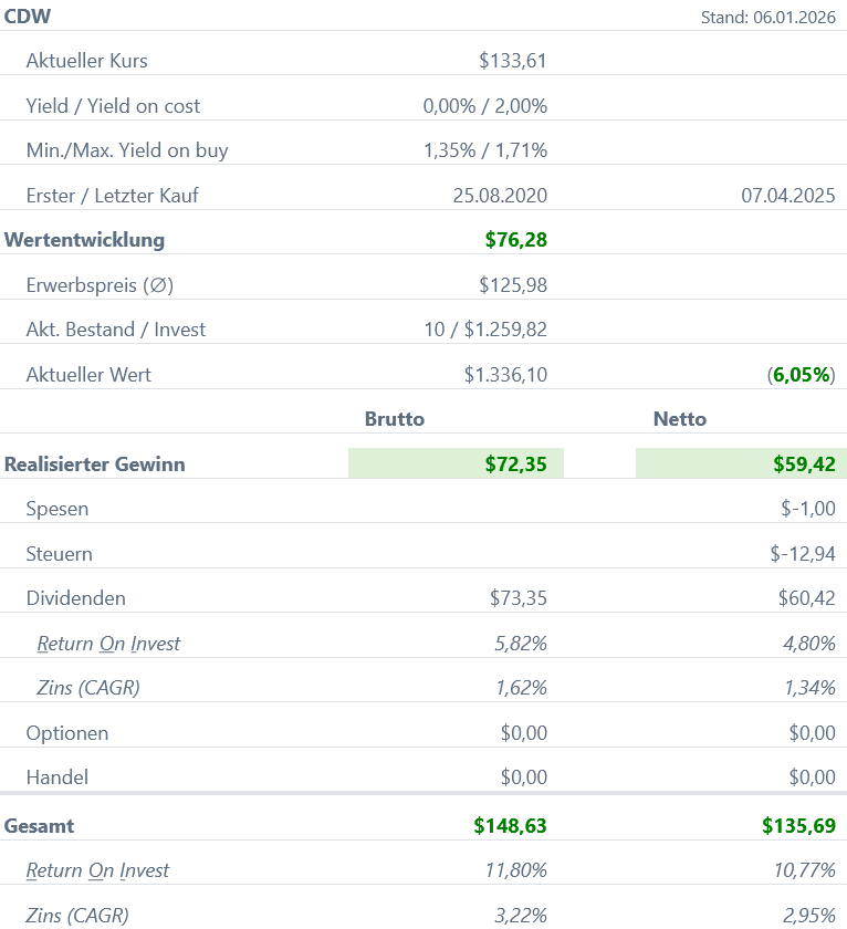 Kassenzettel: CDW Dividende Dezember 2025
