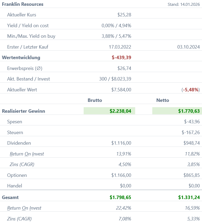 Wir besitzen 300 Franklin Resources Aktien aus drei eingebuchten Put-Option.