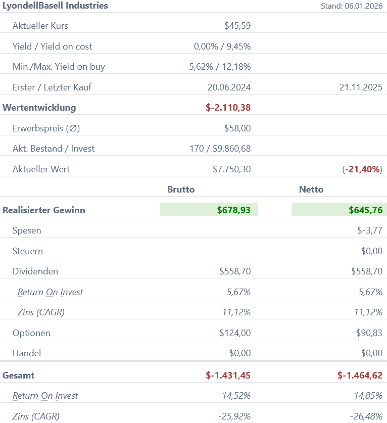 Kassenzettel: LyondellBasell Industries Dividende Dezember 2025