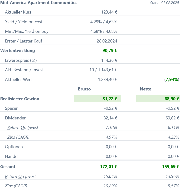 Abrechnung Mid-America Appartment Communities Dividende Juli 2025