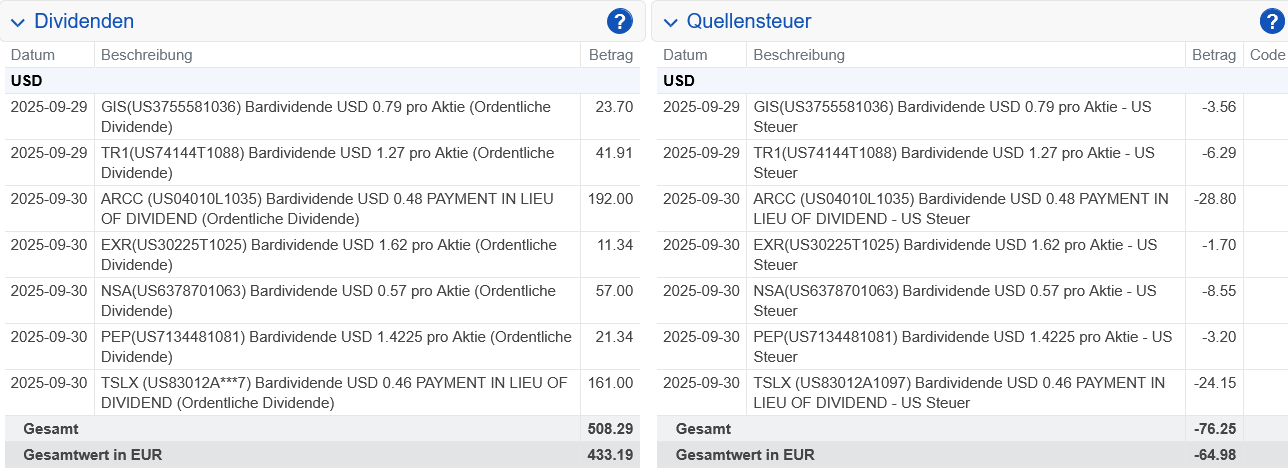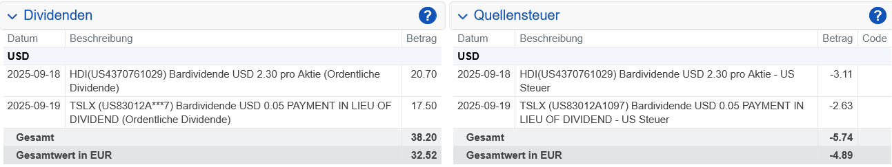 Nach Verrechnung der US-Quellensteuer wurde uns am 19.09.2025 eine Netto-Sonderividende von 14,87 US-Dollar gutgeschrieben.