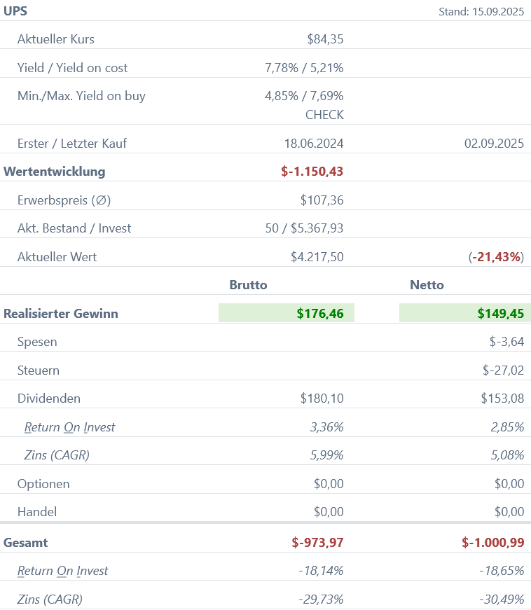Mit Stand vom 15.09.2025 stehen wir mit 1.150,43 US-Dollar oder 21,43% im Minus.