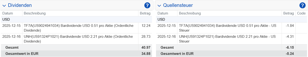 Kassenzettel: UnitedHealth Dividende Dezember 2025